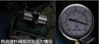 成型工藝方面:對(duì)于注塑工藝方面,觀察發(fā)現(xiàn)有的針閥澆口封膠不嚴(yán),澆口上有殘余的冷料,封閉針閥的氣壓很低,起不到封膠的作用。本案例通過使用氣壓增壓泵提高封針氣壓,熱澆口不再漏料后冷料消失。