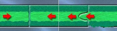 案例中所述的壓力線實(shí)為潛流線,往往出現(xiàn)在是熔接痕所在的區(qū)域,這類壓力線出現(xiàn)的機(jī)理如下圖所示,解決方法是盡量使熔接痕周圍的壓力差減小,或使壓力差不足以推動(dòng)正在固化的熔體移動(dòng)。