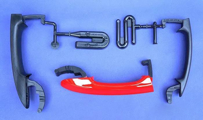 這些門把手采用30%玻璃纖維增強(qiáng)PA6制成,外殼采用PC/ABS混合物制成,背后的結(jié)構(gòu)組件采用30%玻璃纖維增強(qiáng)PP制成。
